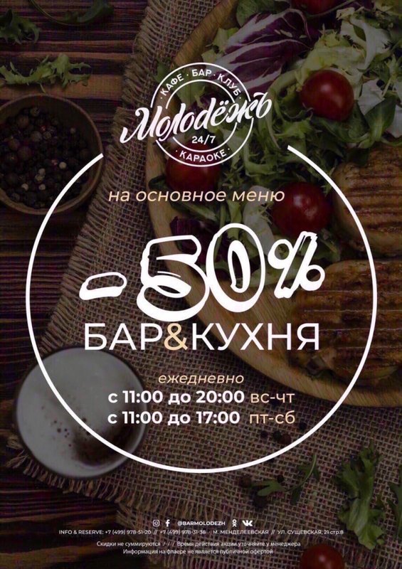 В ночной клуб-рестобар Молодежь в Тверском районе вы можете приятно провести время с друзьями или просто как следует отдохнуть после утомительного рабочего дня, а в этом вам с радостью помогут наши отменные бармены и наше меню. Вам посоветуют варианты горячительного, которые вам определённо понравятся! Вам нужно только сообщить желаемый градус и вкус (сладкий или горьковатый). В нашей винной карте мы предлагаем богатый выбор сладких, полусладких и сухих вин из разных сортов винограда.